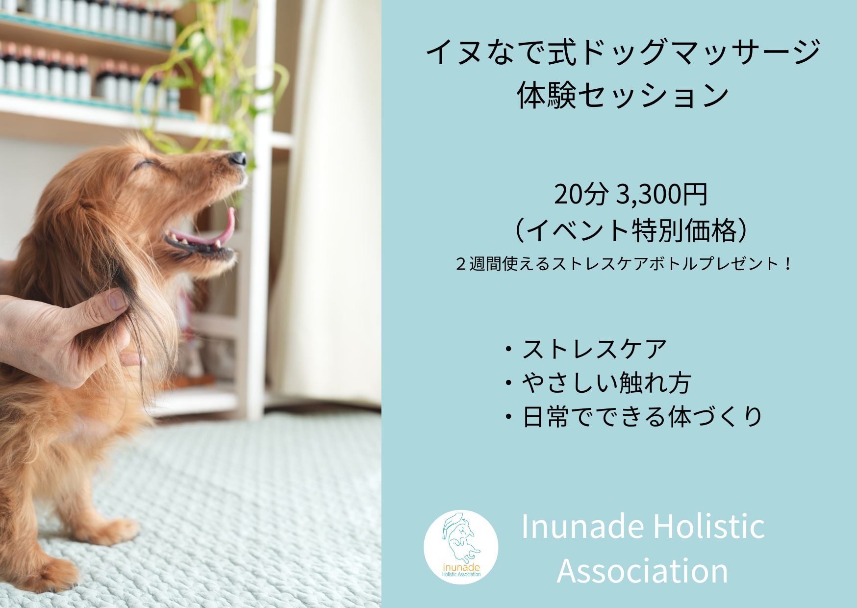 そんな愛犬の心と体をほぐす「イヌなで式 マッサージ&ストレスケア」を体験しませんか?